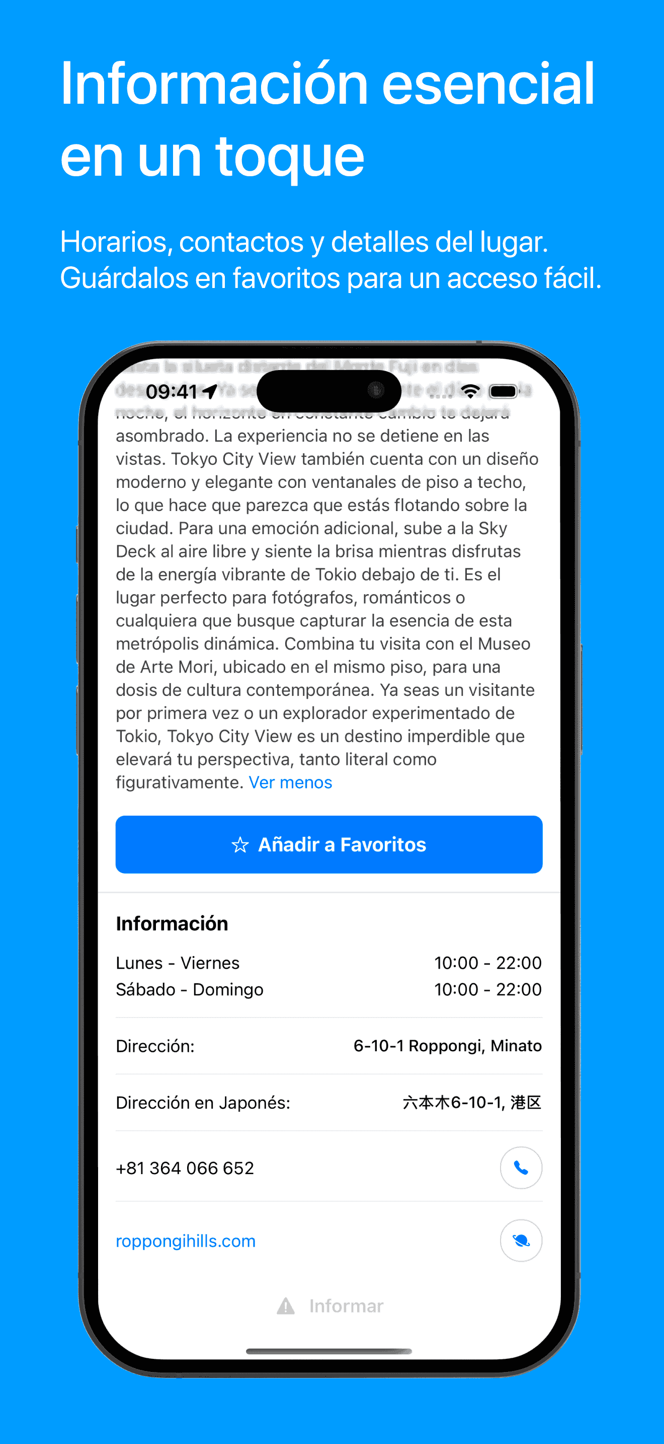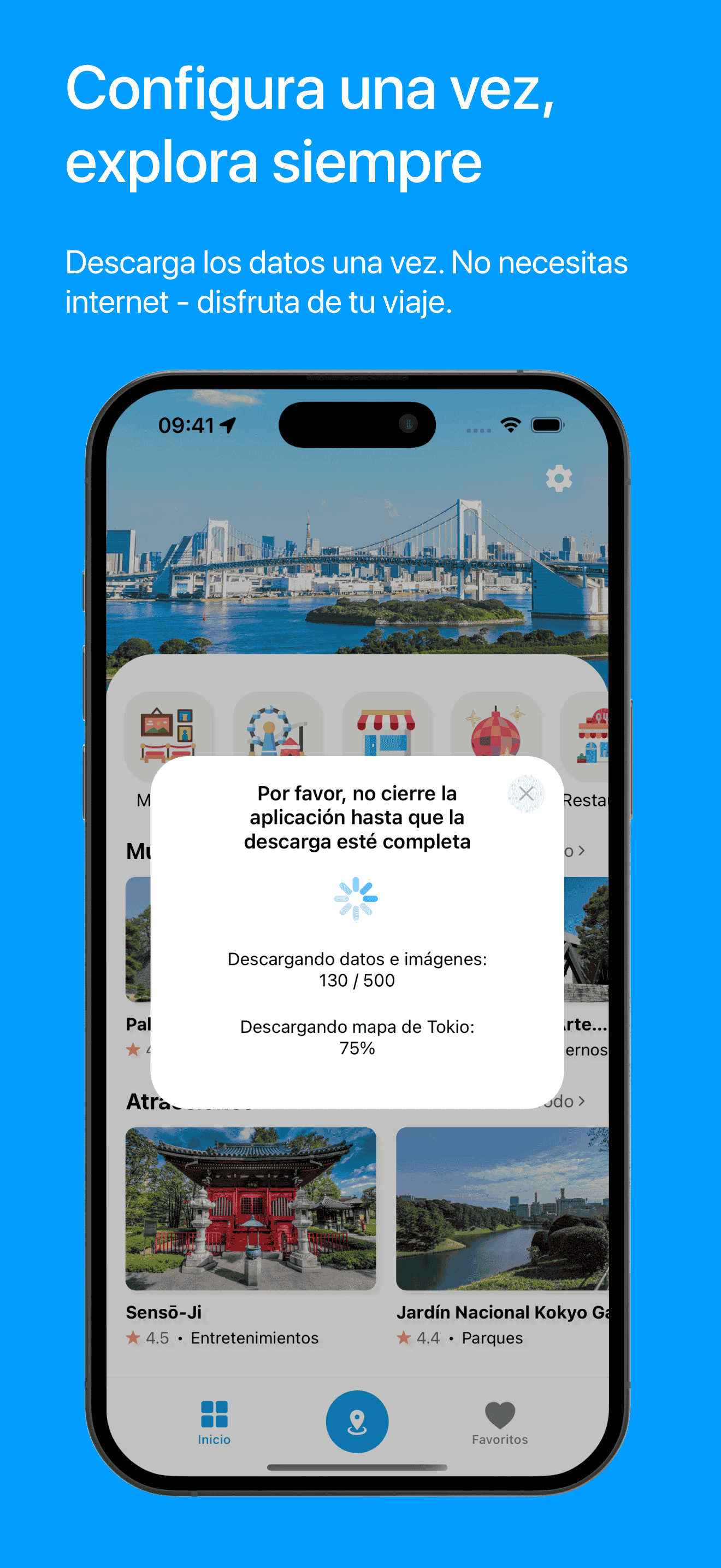 Ya seas un visitante por primera vez o un viajero habitual a Tokio, Visita Tokio simplifica tu planificación, ahorra tu tiempo y te ayuda a enfocarte en disfrutar cada momento. Con mapas e información disponibles offline, nunca te perderás y siempre sabrás qué hacer después.