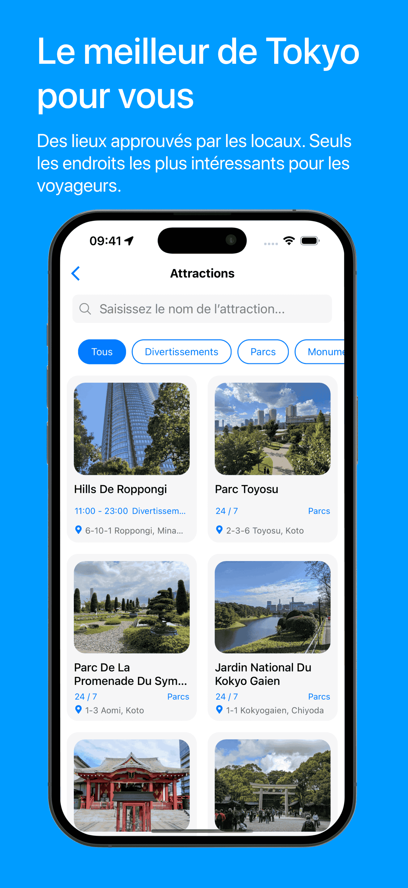 Que vous visitiez Tokyo pour la première fois ou que vous soyez un voyageur régulier, Visiter Tokyo simplifie votre planification, vous fait gagner du temps et vous aide à profiter de chaque instant. Avec des cartes et des informations disponibles hors ligne, vous ne serez jamais perdu et saurez toujours quoi faire ensuite.