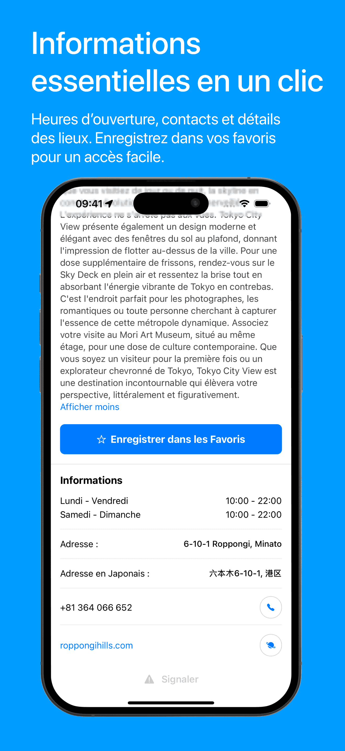- Informations détaillées : Obtenez les horaires, les coordonnées et des descriptions détaillées pour chaque lieu.