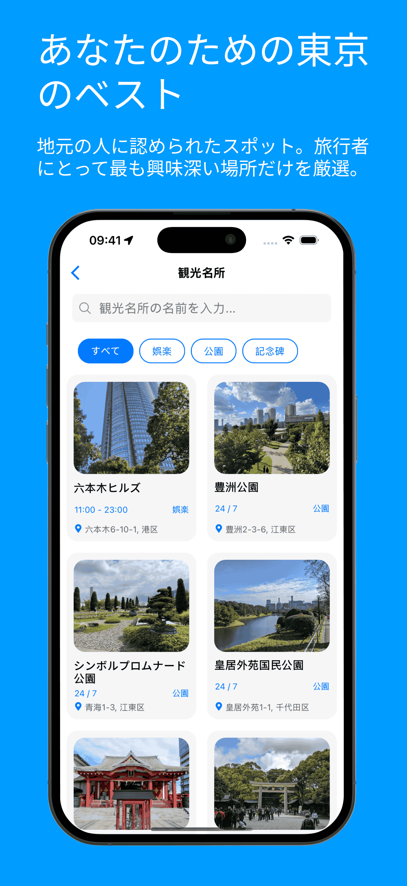 東京旅行を自信を持って計画しましょう。レストラン、観光地、博物館など、すべてのベストスポットがタップ一つで見つかります。地元の人々が確認した厳選されたスポットリストで、東京の最高の体験を提供します。