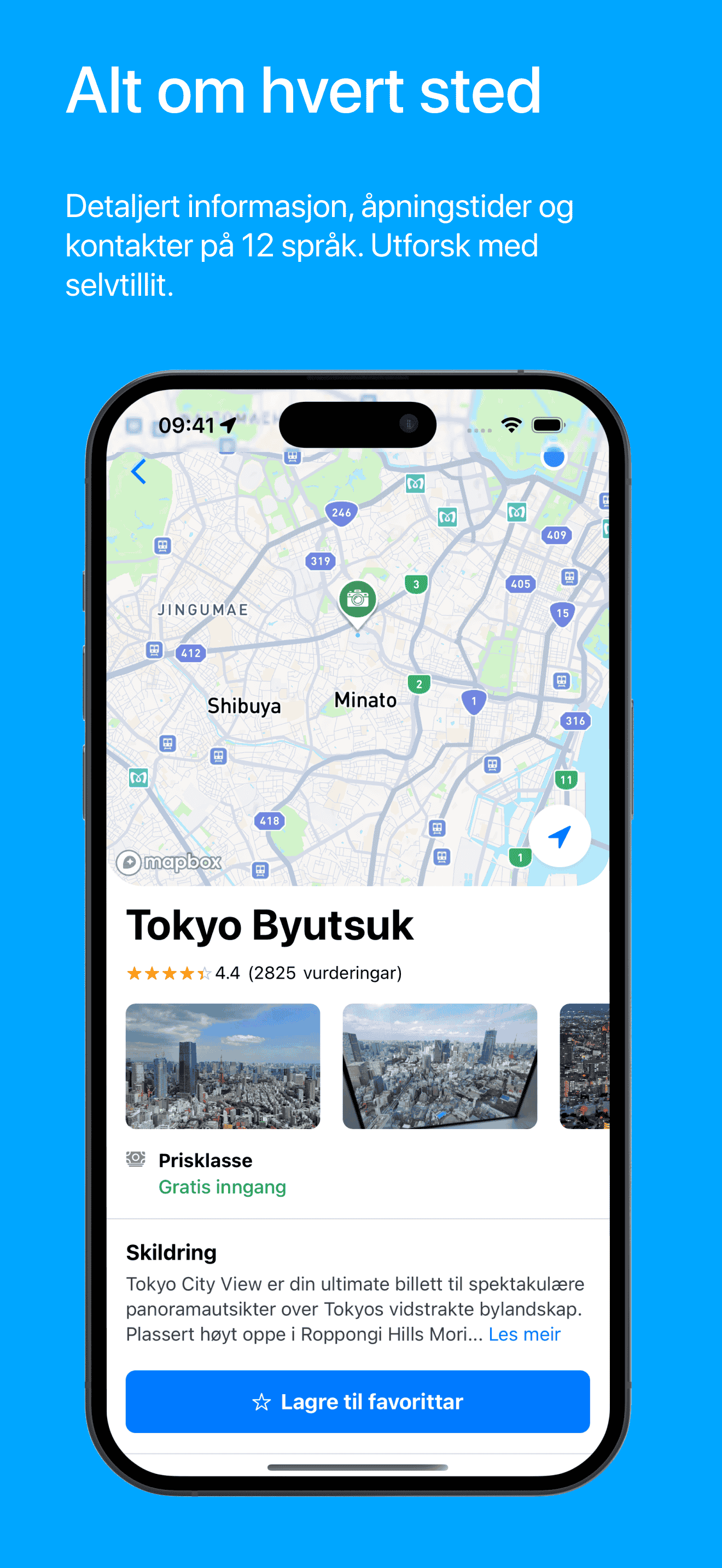 - Lagre favoritter: Bokmerk steder du liker for rask tilgang senere.