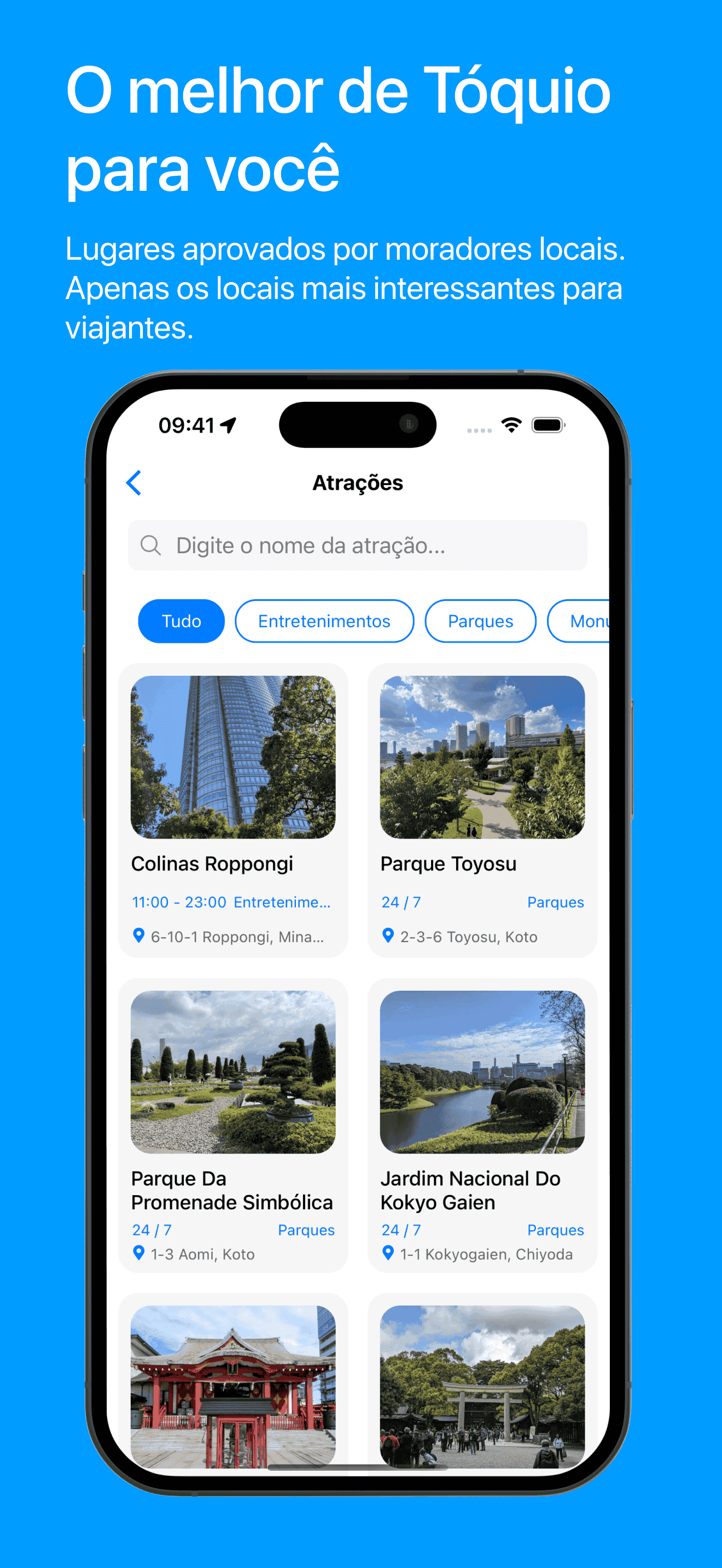 Planeje sua viagem a Tóquio com confiança, sabendo que todos os melhores lugares — restaurantes, atrações, museus e muito mais — estão a apenas um toque de distância. Nossa lista curada de lugares selecionados garante que você experimente apenas o melhor que Tóquio tem a oferecer, verificado por moradores locais e adaptado às necessidades de cada viajante.