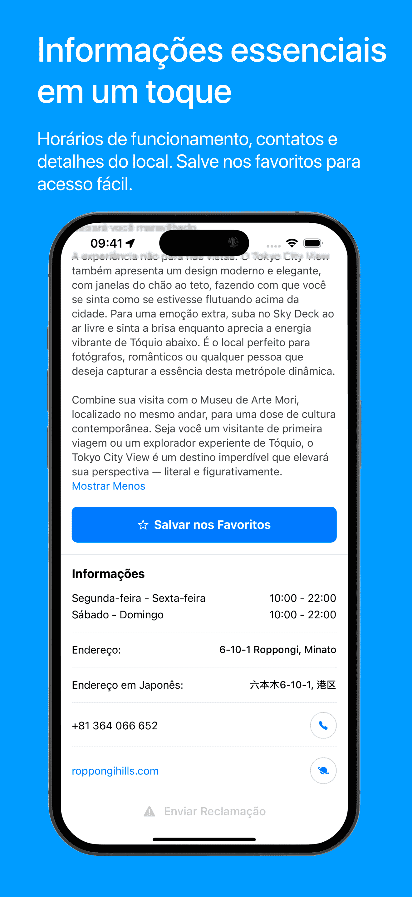 Seja você um visitante de primeira viagem ou um viajante frequente a Tóquio, o Visite Tóquio simplifica seu planejamento, economiza seu tempo e ajuda você a se concentrar em aproveitar cada momento. Com mapas e informações disponíveis offline, você nunca se perderá e sempre saberá o que fazer a seguir.